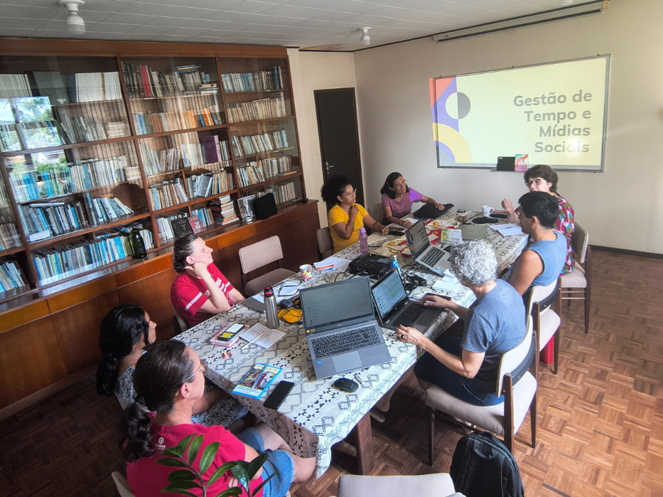 Foram quatro dias intensos de troca de afetos, orações, oficinas e muito planejamento. Éramos uma mistura rica de sotaques, gerações e experiências missionárias: irmãs de diversas regiões do país (Adriana Nones, Ana Cláudia Rocha, Andrea Moratelli, Edione Pereira, Luana de Souza, Marlene dos Santos, Patrícia Cardoso, Rosali Paloschi e Silvia Antunes) unidas aos irmãos Rômulo Ferreira e Washington Lima, da Ordem Franciscana Secular (OFS).
