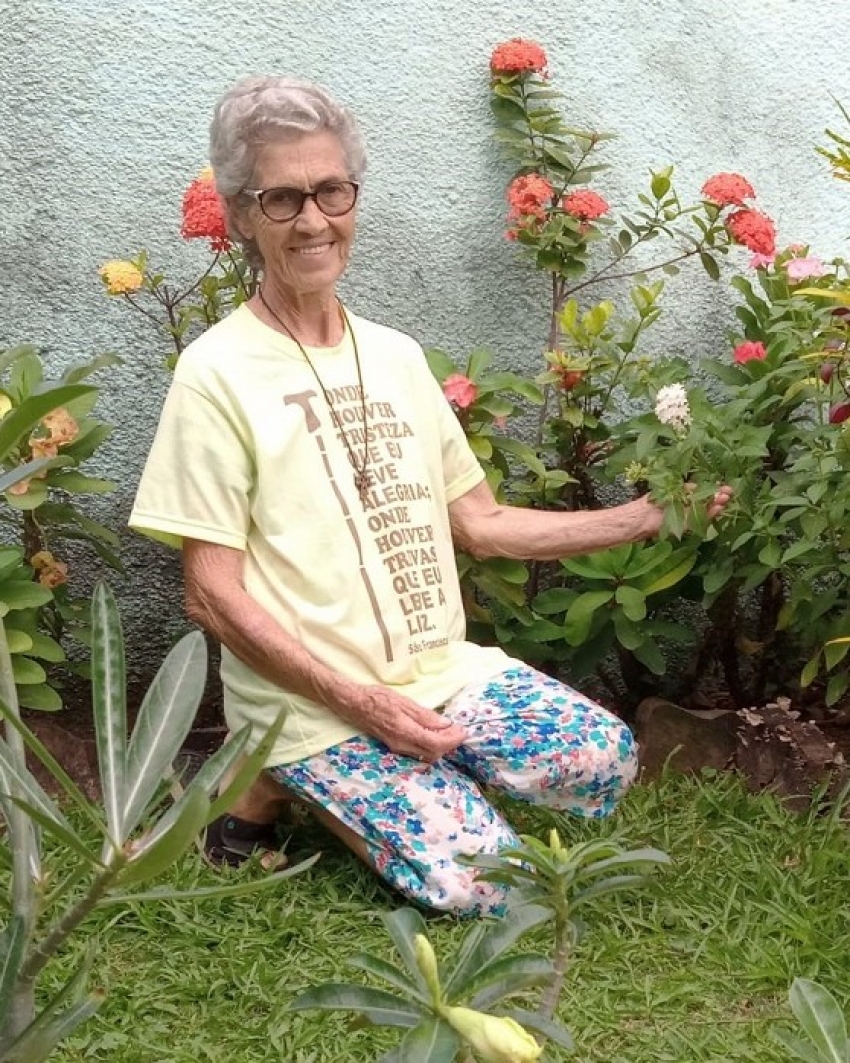 Neste espaço de tempo, esse meu povo me enviou para Alagoas, Araguaína/TO, Paraguai e República Dominicana e, depois de um tempo, me acolheu de volta. Sou muito agradecida a Deus pelas pessoas amigas que encontrei. Hoje às vezes fico triste quando percebo que já não consigo fazer muitas coisas, mas ainda consigo contribuir com a vista aos doentes, a preparação dos pais e padrinhos para o batismo e o cuidado com o jardim da Comunidade Jesus Crucificado e do Centro Pastoral, a fabricação do sabão caseiro Amigo da Natureza. Gosto de cuidar das flores. Elas embelezam, perfumam, alegram a vida da gente e nelas podemos contemplar em suas variadas cores e formatos a grandiosidade e presença de Deus.