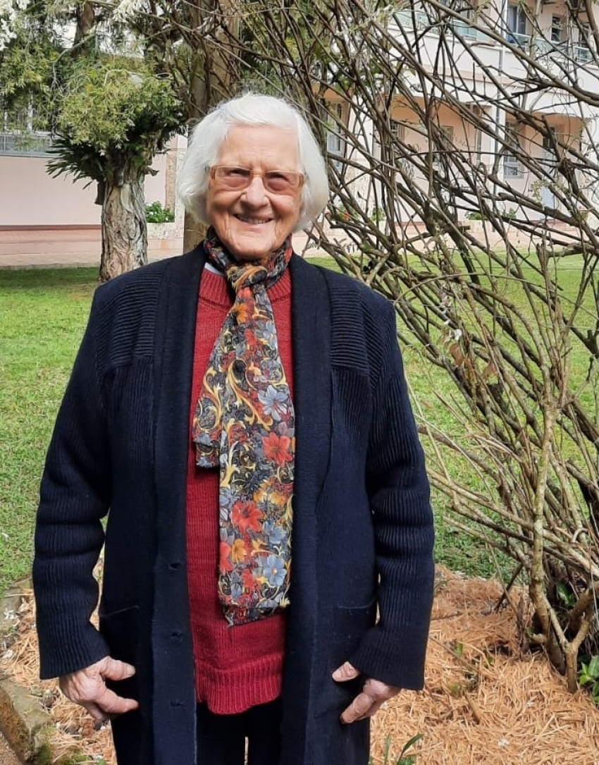 Eu escutei o chamado e disse para mim mesma "vou ser irmã para estudar o catecismo e ensiná-lo como faz a irmã". Este foi o primeiro Sim! Aos 12 anos, dei meu Sim mais consciente e meus pais apoiaram. No dia 13 de dezembro de 1938 chegaram duas irmãs lá em casa para me buscar. Mamãe já havia preparado o enxoval conforme a lista dada pelas irmãs. Eu, com 13 anos, despedi-me da casa paterna. Ao me despedir, fiquei sem voz, queria falar, mas a voz não saía... Minha fala voltou quando cheguei na casa das irmãs.