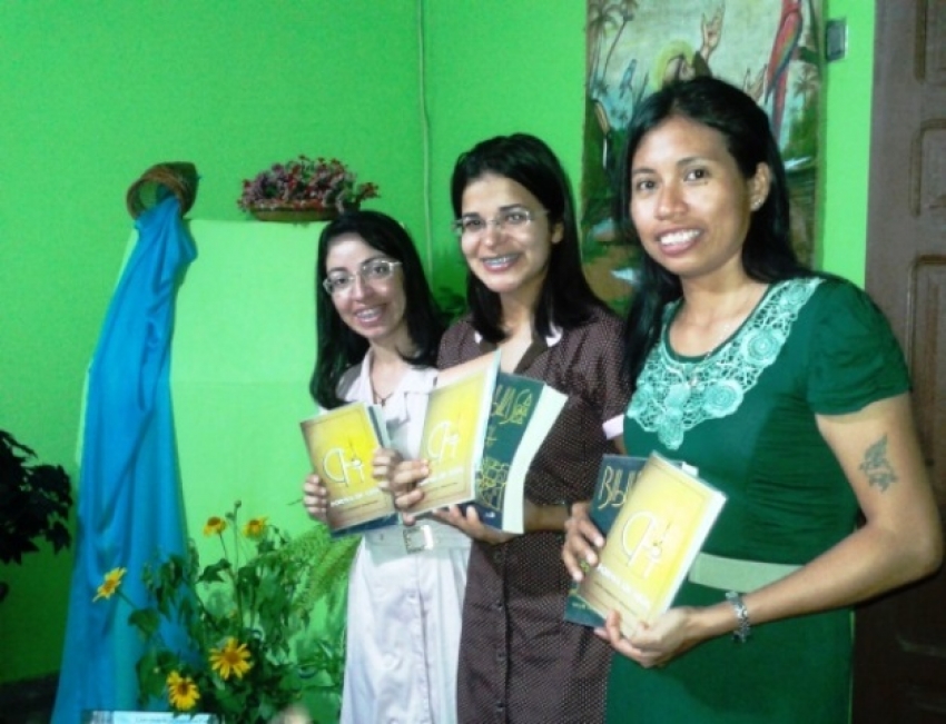 No chão Sagrado de São Gabriel da Cachoeira-AM e, na sua imensidão de água e diversidade de povos e etnias no dia 20 de setembro, nós: Fabiula Souza, Irlândia Almeida e Silvia Eugênia celebramos o ingresso ao noviciado com o lema: Como discípulas, permanecer na Fonte abraçando o Cristo Pobre que faz arder o coração.