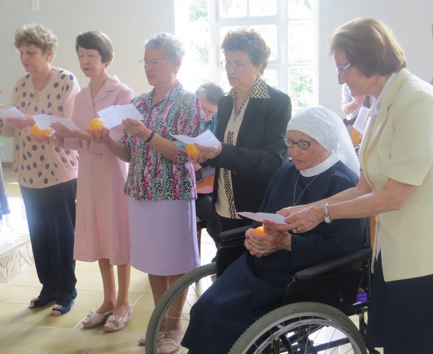 Neste clima de Ação de Graças, dia 19 de outubro, na Casa Mãe, Rodeio - SC, com a presença de familiares, Irmãs, amigas e amigos, celebramos nosso jubileu de vida religiosa consagrada: 80 anos de Irmã Maria Bona e 50 anos das Irmãs: Delfina Moretto, Elsa Rossi, Otília Vieceli e Zilda Brandalise.