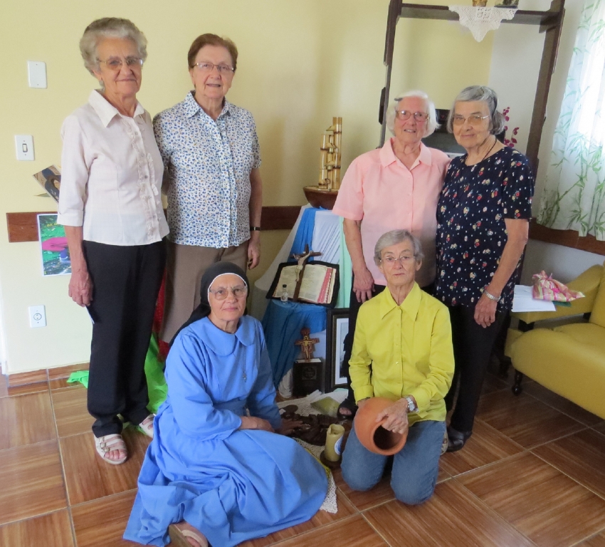 Nosso grupo era de Irmãs acima de 61 anos de VR. Um grupo pequeno. Seis Irmãs, participantes do encontro, duas assessoras, as Irmãs: Izaura Ministra Geral e Terezinha Sotopietra, pela coordenação geral Ivonete Gardini e na acolhida e nos serviços, a Irmã Ana Fusinato. Bom demais! O encontro aconteceu em Piratuba, local de águas termais, o que foi muito significativo para o grupo.