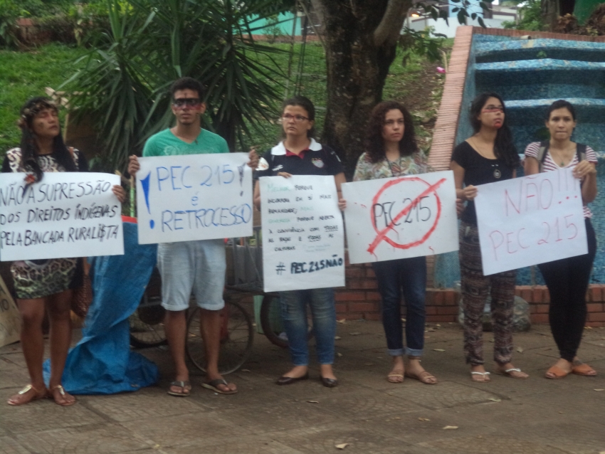 No dia 11 de novembro, um grupo representando organizações indígenas, indigenistas, eclesiais e movimentos sociais de Rondônia se reuniu na Praça Jonatas Pedrosa, em Porto Velho/RO, para protestar contra a Proposta de Emenda à Constituição (PEC) 215 e em defesa dos direitos territoriais dos povos indígenas, quilombolas, comunidades tradicionais e da vida do planeta. A proposta pode ir à votação no Plenário da Câmara Federal a qualquer momento.