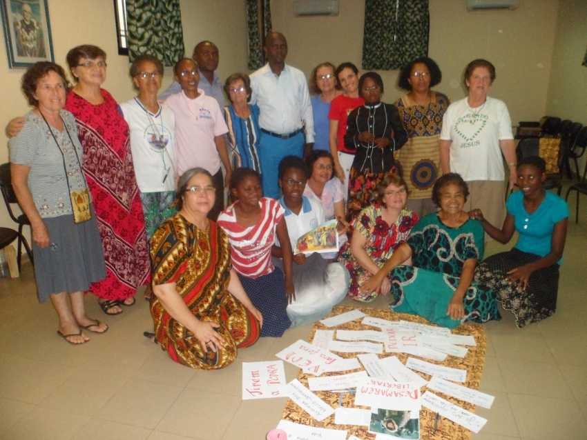 Éramos 12 irmãs, com as três vindas do Brasil: a ministra geral, Irmã Izaura Souza Cordeiro, a vice, Irmã Maria Lunardi e Irmã Maria Aparecida Marques Fernandes que veio atender nossas formandas. Participaram também 05 simpatizantes que chamamos “sementes do carisma”. Nossas formandas de Luanda participaram da reflexão sobre a “Pedagogia de Jesus Cristo” muito bem colocado, pela nossa Ministra Geral.