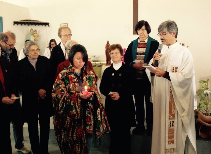 Padre Antônio ofereceu a Irmã Sílvia uma vela dizendo-lhe que em Angola, ela deverá irradiar a Luz de Cristo; que as irmãs missionárias de lá estão com o coração aquecido, pulsando de alegria e de braços abertos para acolhê-la.