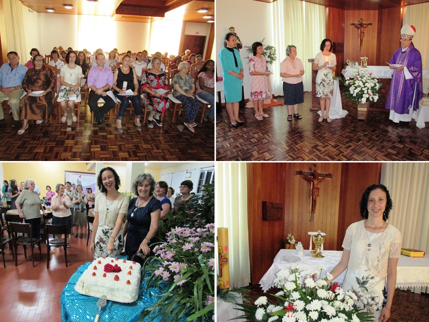 A celebração da profissão religiosa foi vivencial e começou em Puente Kyjhá, Paraguai – onde resido atualmente –, na missa preparada pelas irmãs, simpatizantes do carisma, jovens vocacionadas e o grupo juvenil da Paróquia Santa Catalina. Continuou no retiro orientado pela Irmã Ana Cláudia de Carvalho Rocha, sobre a consagração e os votos, com profundidade e uma rica experiência de Deus. Seguiu na comunidade Nossa Senhora das Graças, no Bairro Boa Vista em Rio do Sul/SC, onde participei da celebração da comunidade e pude agradecer pelo apoio e incentivo que recebi no processo de discernimento vocacional.