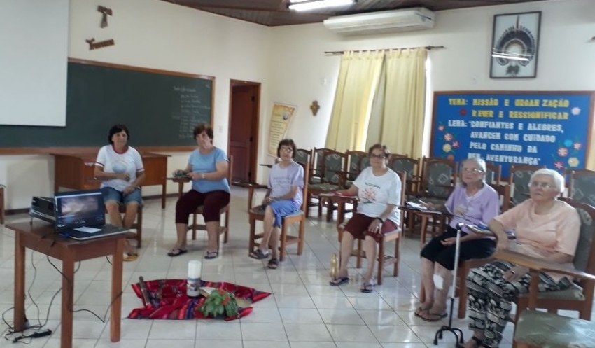 Pés firmes e ligeiros nós Irmãs: Vergínia, Cecília, Martha, Armide e Gema, nos encontramos entre os dia 02 a 04 de maio, em Porto Velho para a roda de conversa, que nos proporciona na caminhada de nossas vidas poder juntas pensar sobre “VIDA – MISSÃO, REVER E REORGANIZAR” vivemos este momento com muita sabedoria, escuta e discernimento. Queremos dizer o quanto foi bom participar deste processo, orientado por Laura e Emília e que vai culminar com a assembleia Capitular em dezembro deste ano.