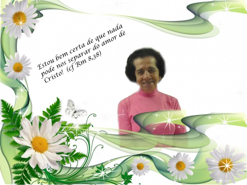 Missão grande e profunda. Testemunho de vida, fidelidade e amor ao Projeto Evangélico. Peçamos que ela interceda ao Senhor por nós todas e por todas as pessoas de sua estima e amizade.