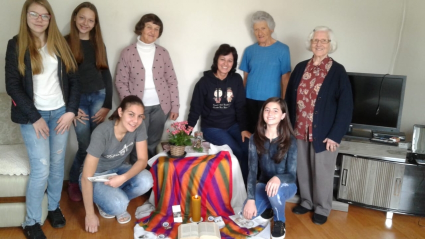Irmã Filomena, desde maio, quando tivemos uma semana vocacional naquela região, começou a convidar as jovens. Então no domingo, dia 01 de julho, tivemos um momento de encontro com uma jovem e três adolescentes, em nossa casa de Rio do Campo. Iniciamos com calorosos abraços de boas vindas, reconhecimento da família e um delicioso café preparado pelas irmãs.