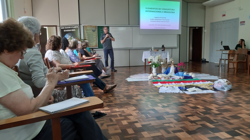 O segundo dia do XV Capítulo da Província Santa Clara de Assis foi dedicado para uma análise de conjuntura Internacional, nacional e local conduzida pelo Assessor Ir. Irio Conti-MSF.