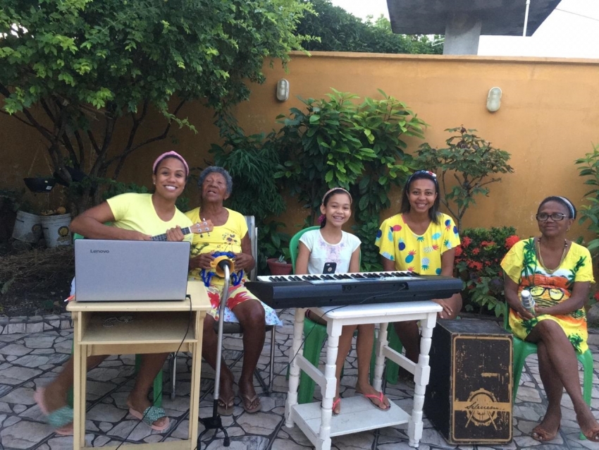 O nosso núcleo familiar é numeroso, mas no convívio diário somos apenas cinco pessoas: uma criança, duas adultas e duas idosas, sendo uma de 87 anos que é a nossa matriarca, ela que nos últimos três anos faz acompanhamento neurológico e geriátrico. Com esse cenário adverso buscamos estreitar ainda mais os laços afetivos, manter uma rotina de interação pessoal com o grupo familiar de casa, mas também usando os grupos de whatsapp da família, comunidade, outros amigos e parentes de outros Estados. Os recursos tecnológicos nesta quarentena têm nos valido bastante.