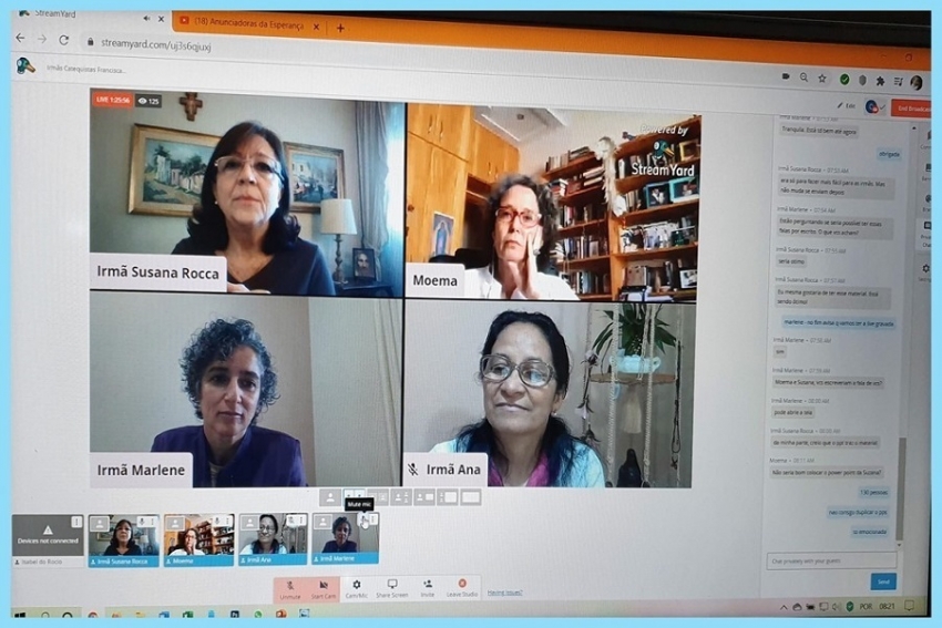 A primeira atividade programada para todas as irmãs foi uma Video Conferência (Live), com o tema: “Irmãs Catequistas Franciscanas reinventando caminhos”, realizada no dia 13 de julho em português e no dia e 14, em espanhol.