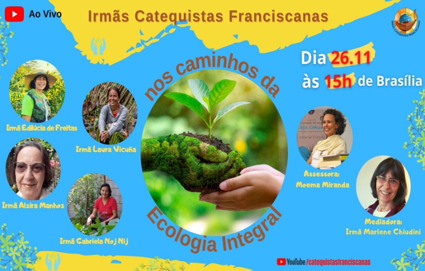 No último dia 26 de novembro, fomos agraciadas com a realização de mais um ENCONTRO congregacional online. O tema “Irmãs Catequistas Franciscanas nos caminhos da Ecologia Integral” foi um convite a cultivar nosso olhar de ternura, gratidão e cuidado para com nossa Casa Comum e buscar nossa sustentabilidade sem agressão, sem exclusão, com justiça, na solidariedade. A escuta das vivências compartilhadas pelas irmãs Gabriela Noj Nij e Alzira Munhoz, de Guatemala; Laura Vicuña, de Porto Velho, Rondônia; Edilúcia de Freitas, de Fátima de São Lourenço, Mato Grosso; enriquecida pela reflexão de Moema Miranda e a mensagem da irmã Ana Pereira de Macedo, fez arder o coração!
