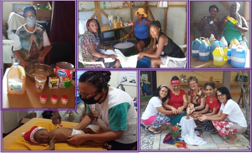 No período de minha permanência no Haiti, atuei no acompanhamento de um grupo de mulheres na fabricação de sabão líquido, que vendem para ajudar no autossustento. O suporte para a compra dos materiais no início da produção veio de um projeto financiado pela Missão Central Franciscana. Em seguida, continuamos a caminhar com os próprios recursos gerados com a venda do sabão.