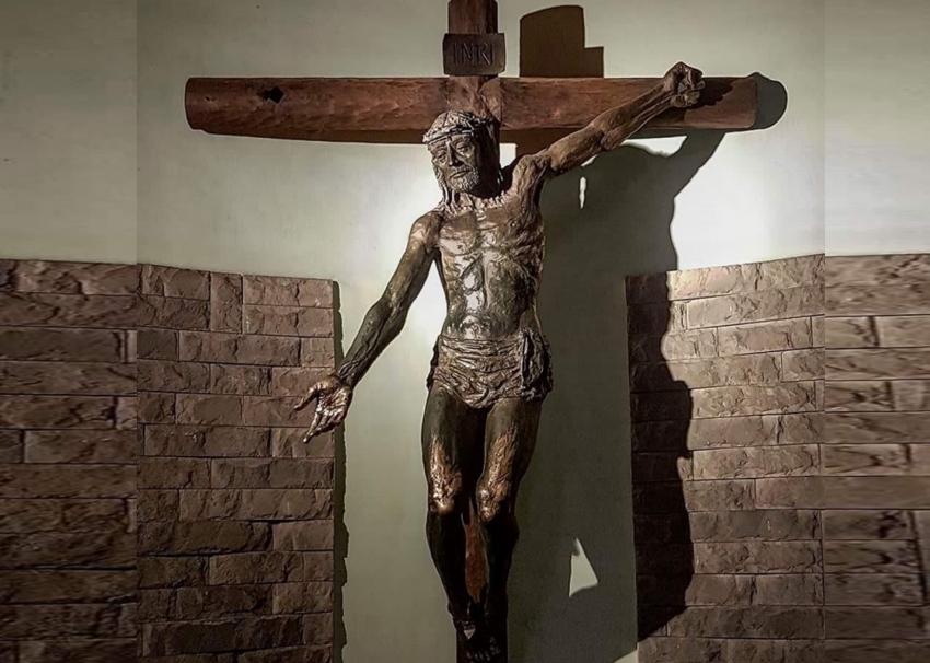 No silêncio do seu coração, coloque-se, em atitude contemplativa, diante da escultura do Crucificado; notemos que um de seus braços está crucificado e o outro está estendido, com a mão aberta para acolher quem d’Ele se aproxima. Quanta vida e comunicação silenciosa nesse gesto! Trata-se de um grito de amor,