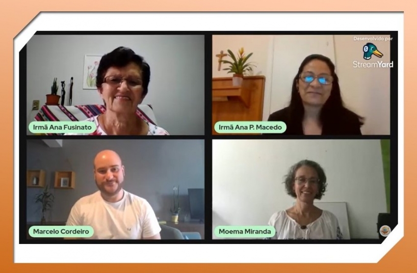 Pelo êxito desta live, cabe aqui um voto de louvor pela competência da equipe técnica, pela calma e habilidade da moderadora, Ana Fusinato, a expressiva atuação dos assessores Moema e Marcelo, o aceno animador e comprometedor da Ministra Geral que nos veio desde Roma, ao grupo da Irmandade de Rondonópolis que de forma criativa nos proporcionou vivenciar um profundo momento orante. Tudo isso, coroado com a expressiva e ativa participação das irmãs, nos enche de esperança e nos dá a certeza de que, abertas à utopia e à ousadia, o NOVO da nossa VIDA-MISSÃO nos surpreenderá.