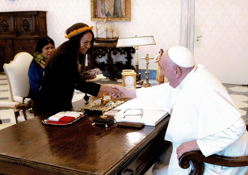 Não deixamos de abordar a grande problemática que vive o Brasil, com a crescente violência contra os povos originários e a violação de direitos, com a aprovação do Projeto de lei 490, pela Câmara dos deputados federal e que é uma grande ameaça aos direitos garantidos constitucionalmente. Foi solicitado ao “vovô” Francisco uma palavra ao governo brasileiro e ao Supremo Tribunal Federal, em favor dos povos originários e contra o Marco temporal, que tramita no congresso nacional e aguarda julgamento no Supremo Tribunal Federal.