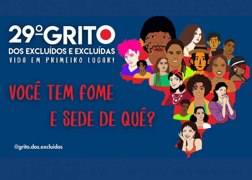 Neste ano de 2023, celebramos a 29ª edição do Grito dos Excluídos, com o tema: “Vida em primeiro lugar”, e o lema, muito atual: “Você tem fome e sede de Quê?”.?A vida é dom de Deus e deve estar em primeiro lugar na sociedade. Mas tem sido ameaçada em diversas circunstâncias, principalmente no cinturão da fome. Temos que gritar diante da má distribuição dos bens da natureza.