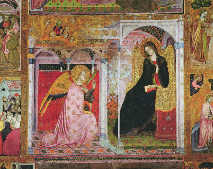 A cena de hoje pertence a um díptico: é a segunda parte do anúncio a Zacarias. Enquanto o primeiro está na Judéia, em Jerusalém, Maria está na Galiléia, numa cidade desconhecida. O primeiro está no templo, mais precisamente no santuário do templo; a segunda, num lar humilde. O primeiro anuncia o último dos profetas; a segunda, a novidade do cumprimento da promessa de Israel. Dante, entrelaçando a figura de Maria com Deus criador e toda a criação, descreve Maria de forma sublime: “Virgem Mãe, por teu Filho procriada, Humilde e superior à criatura, por conselho eternal predestinada! Por ti se enobreceu tanto a natura Humana, que o Senhor não desdenhou-se De se fazer de quem criou, feitura. No seio teu o amor aviventou-se, E ao seu ardor, na paz da eternidade, O germe desta flor assim formou-se.” (Paraíso XXXIII, 1-9)