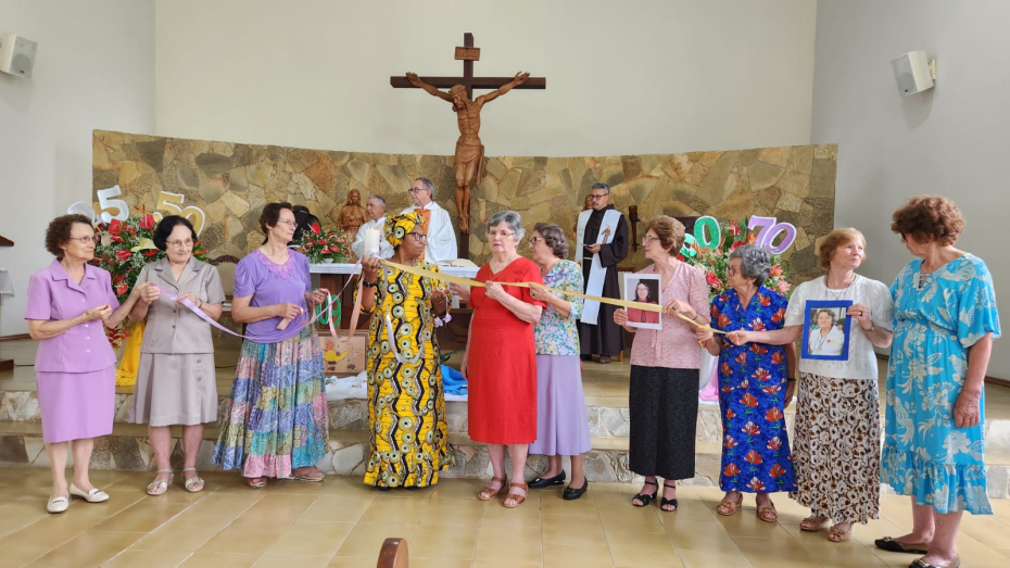 Mais uma vez, um significativo grupo de irmãs, familiares e freis reuniu-se na Casa Mãe, em Rodeio, SC, para celebrar os 109 anos de Vida e Missão da Congregação das Irmãs Catequistas Franciscanas, e o sim generoso de Vida Religiosa Consagrada das irmãs jubilares: 25 anos de Darlene Francisca de Lima; 50 anos de Adilma Mezzari, Aurélia Dal Mago, Leda Corso, Marilete Jorgina Rover, Miriam Stolf, Nair Izoton; 60 anos de Edite Nardelli, Maria Salvador e Valdina Tambosi e 70 anos de Irmã Lurdes Bet.