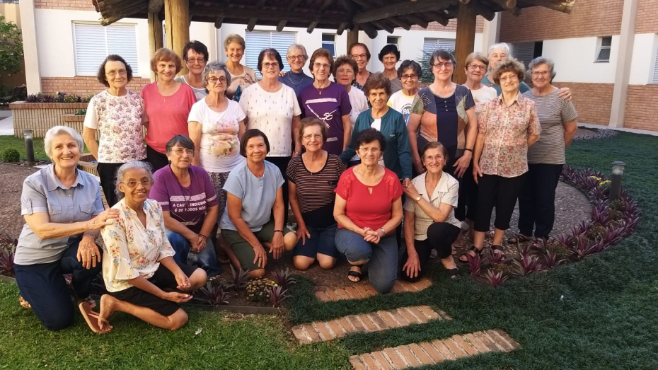 Assim estamos nós! Um grupo de 24 irmãs de diversas regiões, reunidas na Casa Paz e Bem em Curitiba, para refletir sobre a nova configuração da congregação, o serviço de governança com suas atribuições e a priorização dos espaços geográficos.