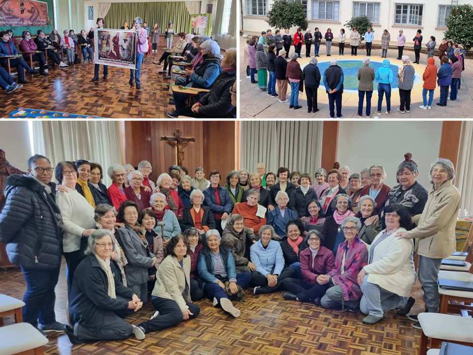 Ainda seguindo na linha do tempo, foi realizada uma roda de conversa, que ocorreu com leveza, serenidade e alegria, revisando passos dados e perspectivas para o processo vivenciado na reorganização congregacional. Invocamos o “Espírito de novos começos” e fomos interpeladas a acolher esse novo que continua surgindo de várias formas, com as novas vocações, considerando a interculturalidade, tendo presente os povos originários e comunidades tradicionais, como riquezas para a Congregação. Assim, confirmamos nosso compromisso, de acordo com o carisma.
