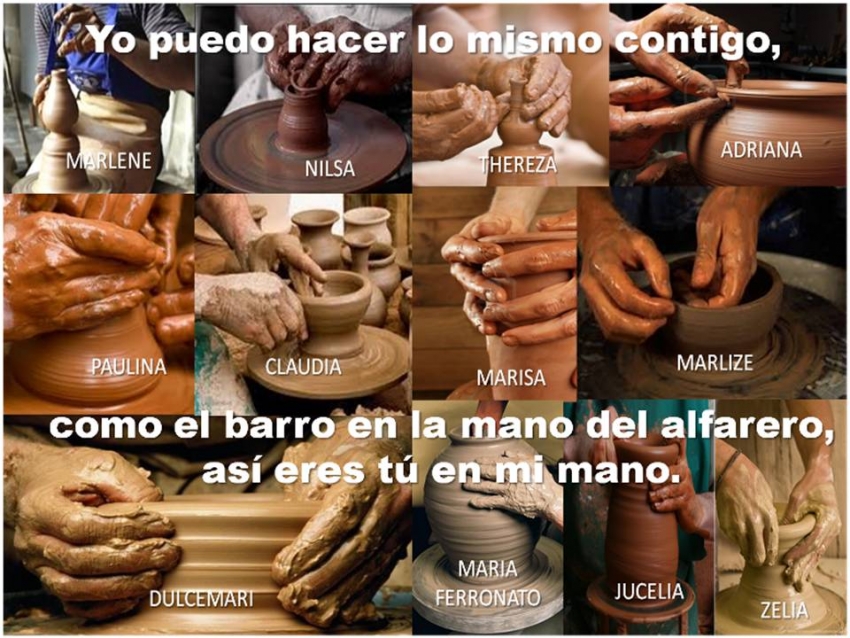 El primer momento de oración comunitaria fue conducido por la fraternidad de Viedma que nos invitó a celebrar la vida de la hermana Cleglia Anesi y a partir de ella las hermanas Paulina y Nilsa compartieron sus vivencias como misioneras en Argentina y Chile. Otro momento fuerte de oración fue conducido por la fraternidad de Trelew que nos invitó a dejarnos en las manos del Alfarero para sernos moldeadas a partir de la misión que el Padre nos invita.