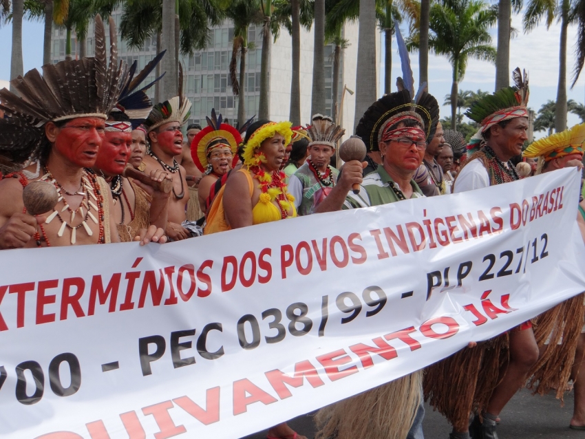 Que há uma ofensiva legislativa sendo promovida pela bancada ruralista contra os direitos originários dos nossos povos, os direitos de outras populações tradicionais e os direitos de todos os brasileiros ao meio ambiente saudável, por meio de dezenas de projetos de lei e emendas à Constituição – em especial a PEC 215/00, PEC 237/13, PEC 038/99, PL 1610/96 e PLP 227/12 – que afrontam, inclusive, acordos internacionais assinados pelo Brasil, como a Convenção 169 da Organização Internacional do Trabalho (OIT), e a Declaração da Organização das Nações Unidas sobre os Direitos dos Povos Indígenas;
