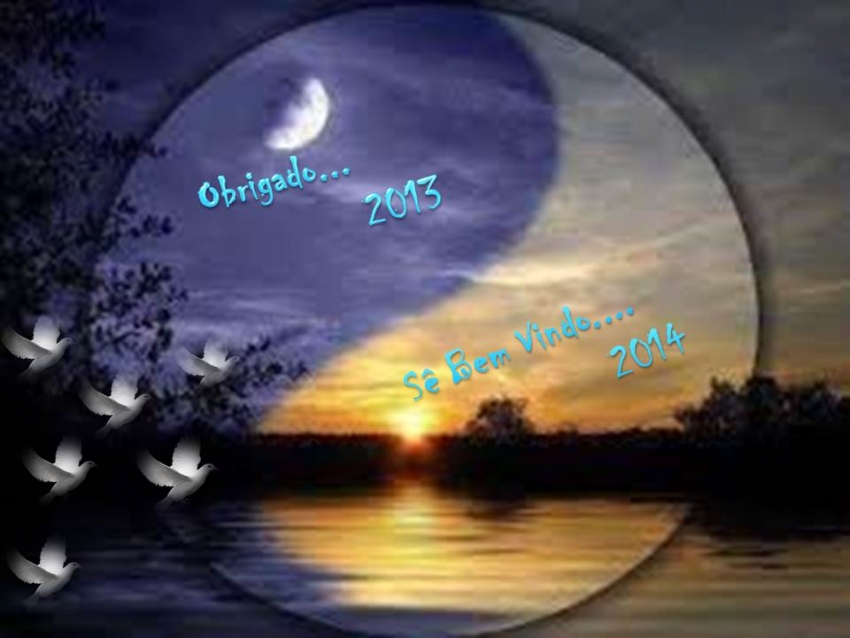 Na meia noite de 31 de dezembro, “os fogos de artifício, os brindes anunciam que o ano novo está presente e o ano velho ficou para trás. Os olhos se cruzam, as mãos se entrelaçam e os seres humanos, num abraço caloroso, num só pensamento e na alegria exprimem desejos: Obrigado/a, com muita PAZ e muito Amor”.