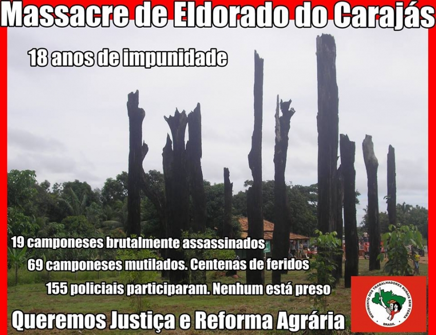 Há 18 anos, centenas de trabalhadores rurais sem terra caminharam por mais de 2 dias até Eldorado, na PA - 150. Cansados, montaram acampamento em um terreno improdutivo e cobraram uma reunião com representantes do governo do estado para discutir sobre a demora de desapropriações previstas na área. Homens, mulheres e crianças que não tinham onde morar lutavam pela reforma agrária e reivindicavam lotes de terras improdutivos para que eles pudessem trabalhar, produzir, morar. Mas o então governador do estado Almir Gabriel (PSDB) não tinha o costume de discutir reforma agrária e nem de reunir com trabalhadores, ainda mais trabalhadores rurais que não fazem greve e talvez nem votem.
