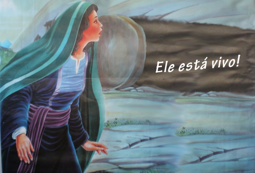 “O dia seguinte, o começo do primeiro dia da semana, Maria de Madalena e a outra Maria foram ver o túmulo de Jesus” (Mt 28,1). Madalena sabia que iria encontrar só uma grande pedra na sua frente. Lá no túmulo estava só o corpo de um morto, Jesus não iria mais voltar... Mas Maria de Mágdala precisava estar perto do Mestre... Túmulo... vazio. Pedra... fora do lugar. Luz.... anjos. Morte. Derrotada... Ressurreição! “Jesus não está entre os mortos! Ele ressuscitou e nos espera lá em casa, lá no meio dos empobrecidos, lá na Galiléia!” (Mt 28,7).